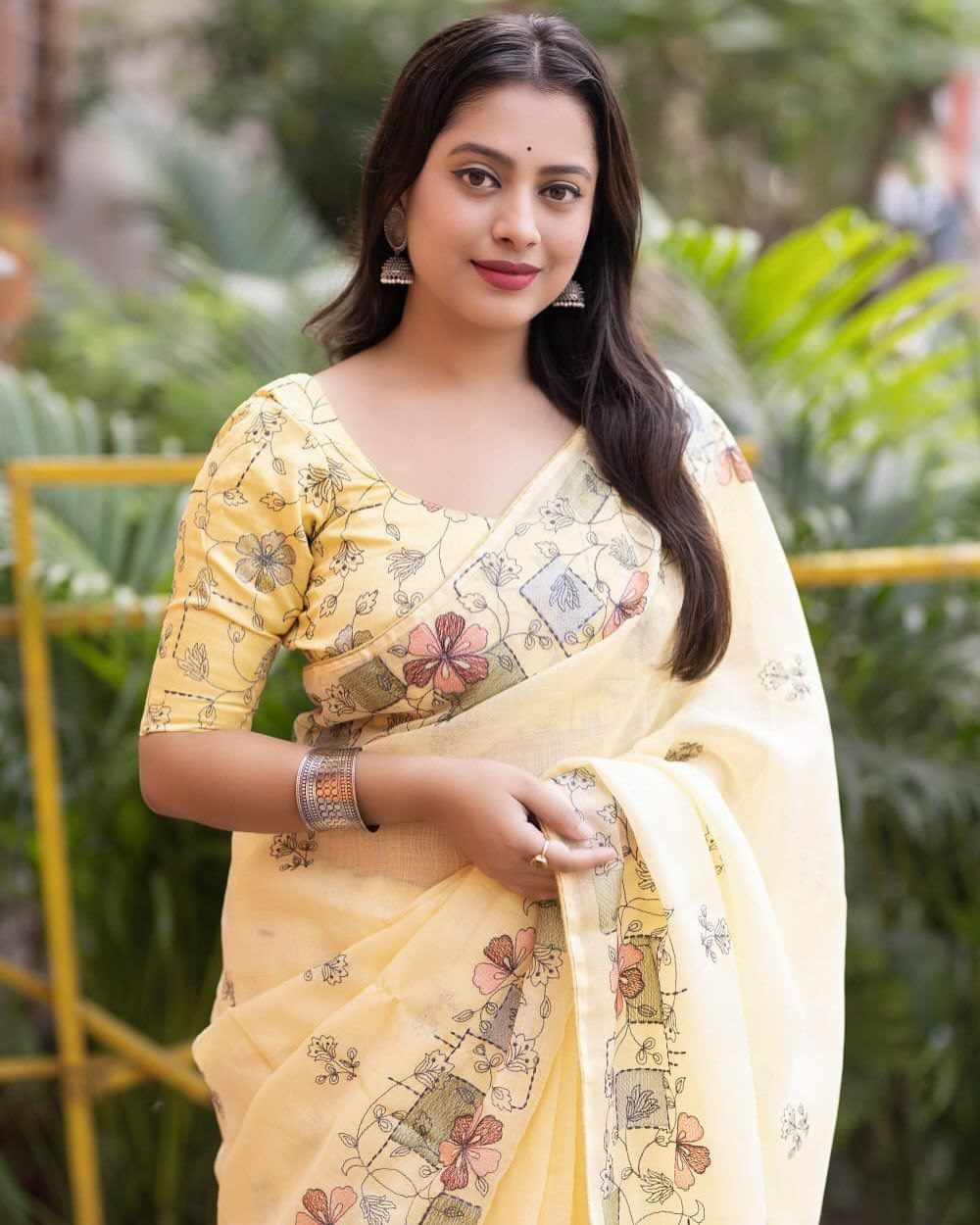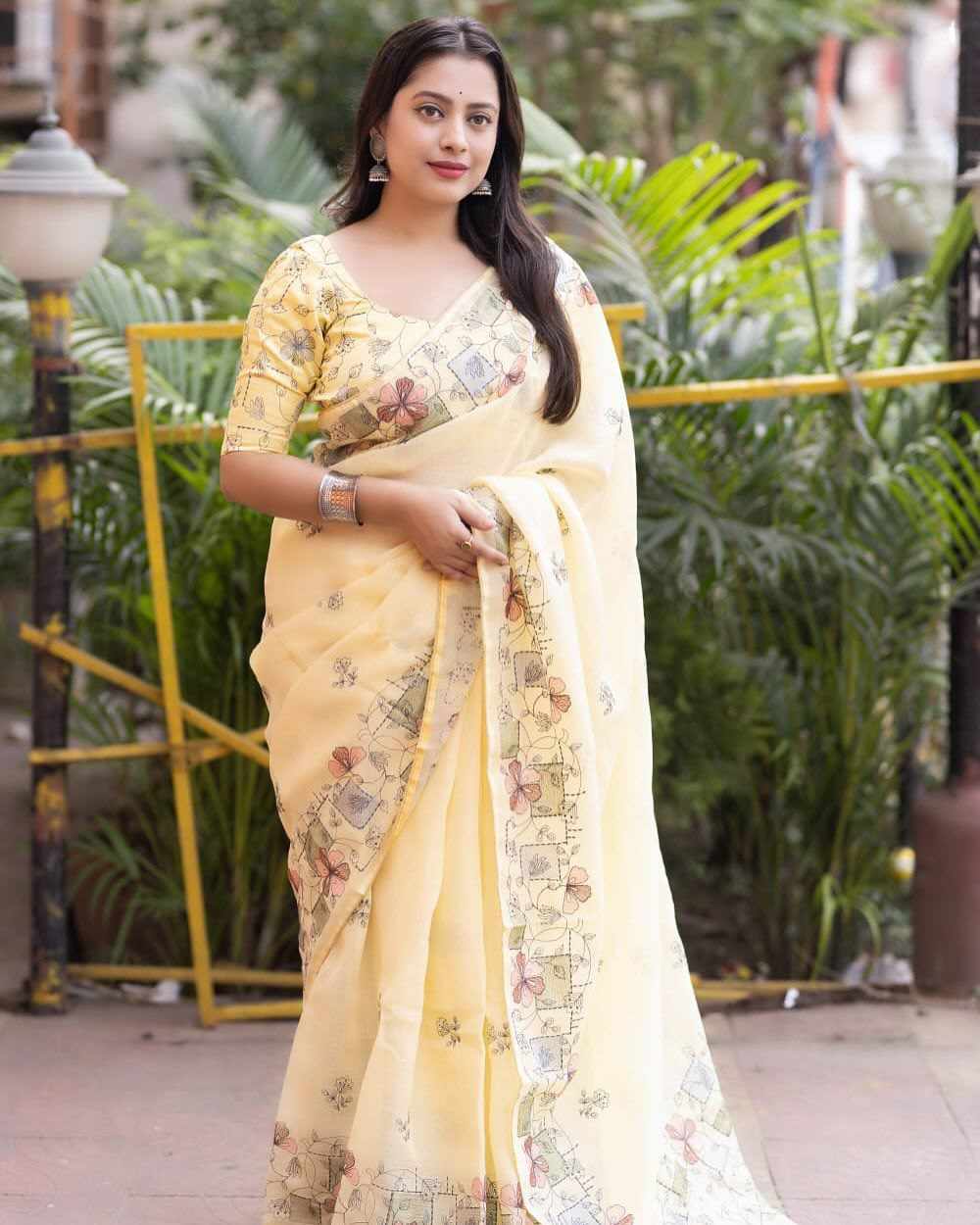 PIYU P1021 Malti C pallu Yellow Sraee