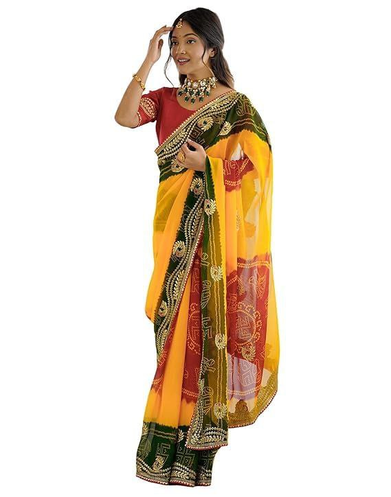 | Name : | PIYU P1030 mor bandhani Yellow-Red Saree |