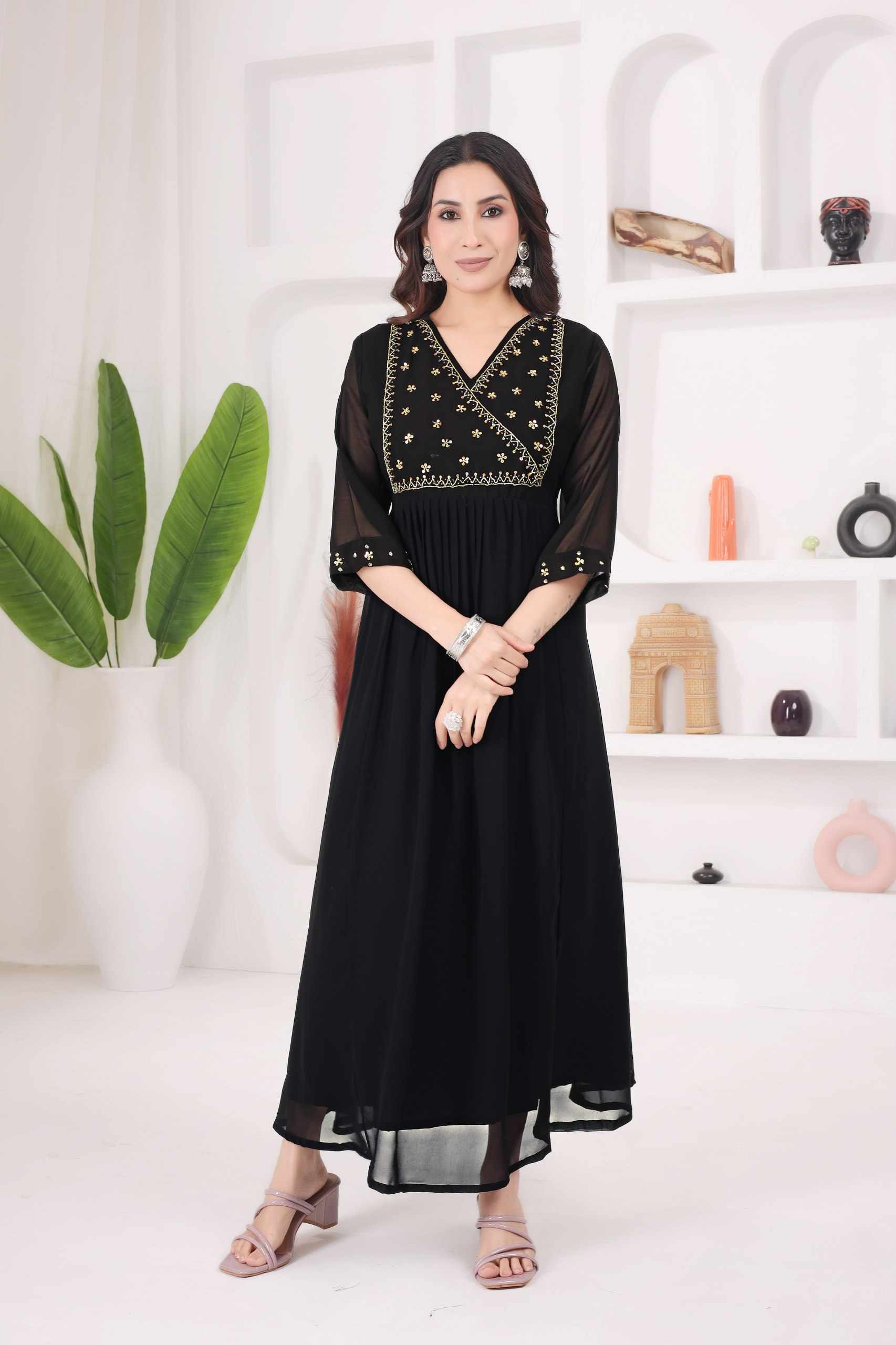Reviews for WM12 BLACK BLOOMING GEORGETTE BEAUTIFUL HANDWORK KURTI